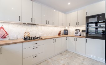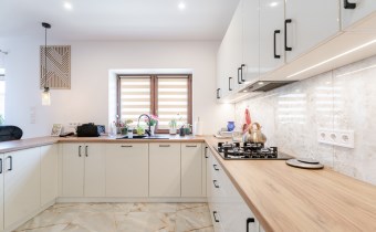 Оснащение кухни стоячие шкафы, раковина с батареей, посудомоечная машина, небольшое оборудование, нагревательная плита, морозилка, микроволновая печь, кухонные шкафы, кухонные здания, кухонная мебель по размеру, духовка, вытяжка, висячие шкафы, vir_listalng_stala_zabudowa, холодильник, холодильник с морозильной камерой, электрическая кухня