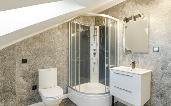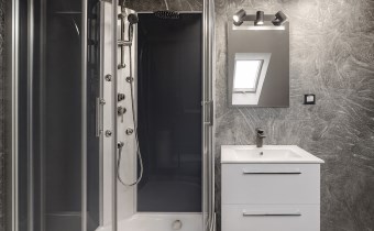 Оснащение ванной комнаты душ с гидромассажем, зеркало, туалет, умывальник