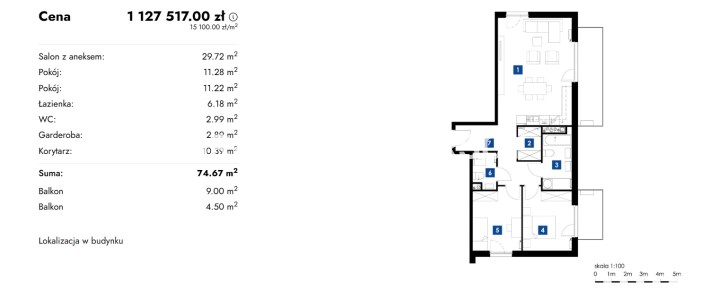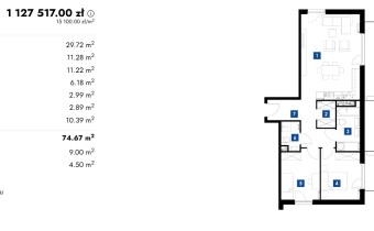 4 rooms 97,00 m2 12 855,67 zł/m2 3 542,19 USD/m2