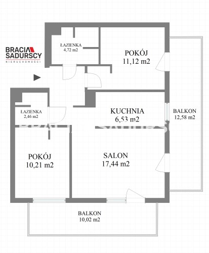 Площадь комнат 17,44 ; 11,12 ; 10,21 m2