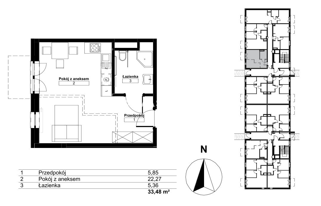 Площадь 33,48 m²