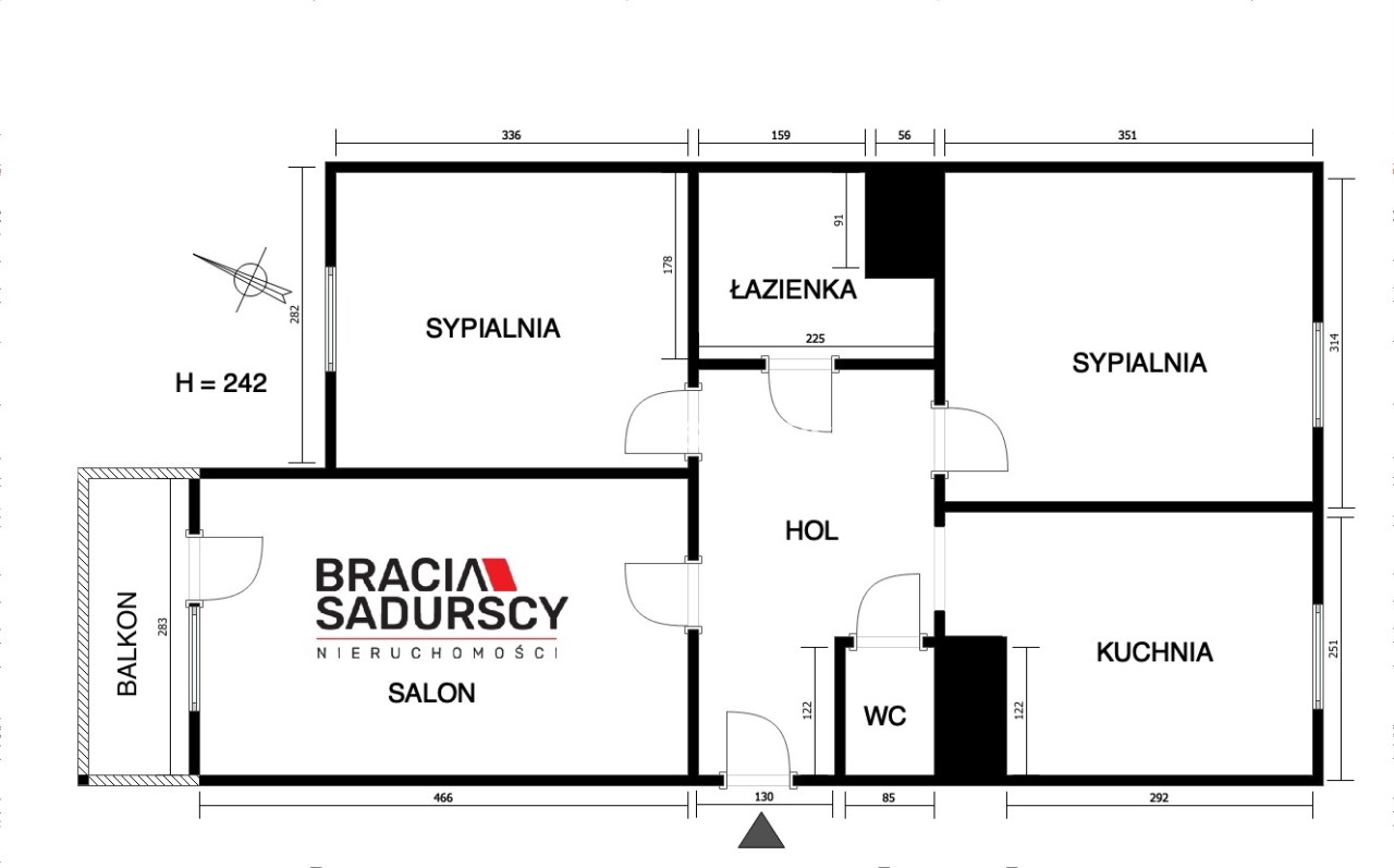 3 rooms 63,00 m2 8 714,29 zł/m2 2 435,52 USD/m2