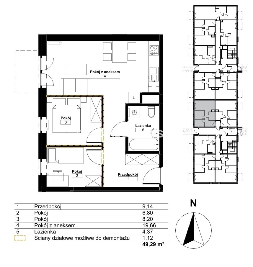 Площадь 49,29 m²