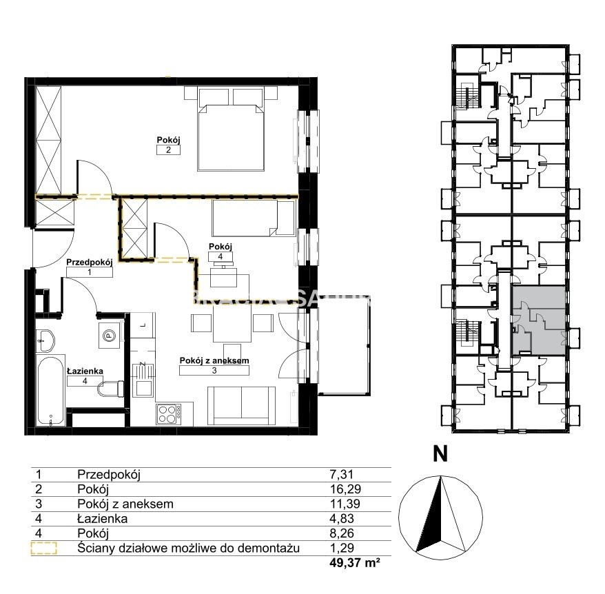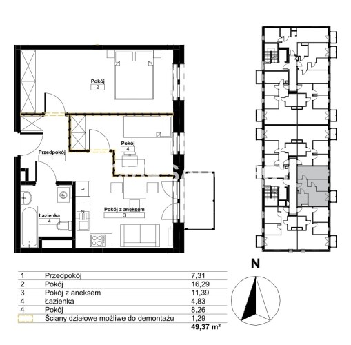 Площадь 49,37 m²