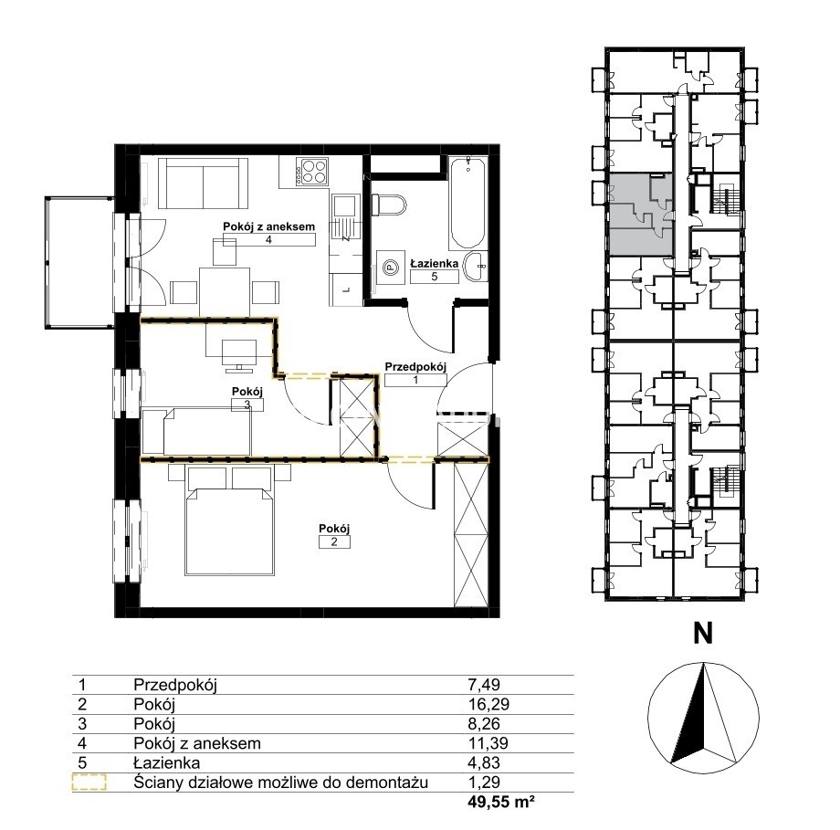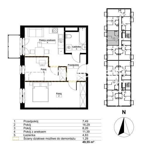 Площадь 49,55 m²