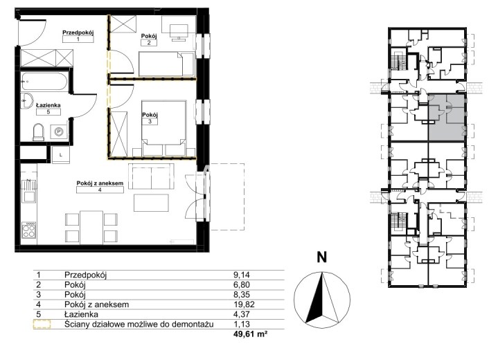 Площадь 49,61 m²