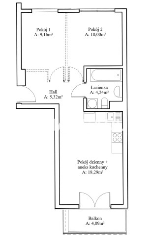 Площадь комнат9,16 ; 10,00 ; 18,29 m2