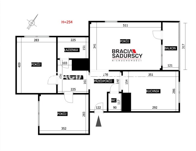 3 rooms 63,00 m2 8 714,29 zł/m2 2 427,51 USD/m2