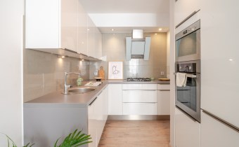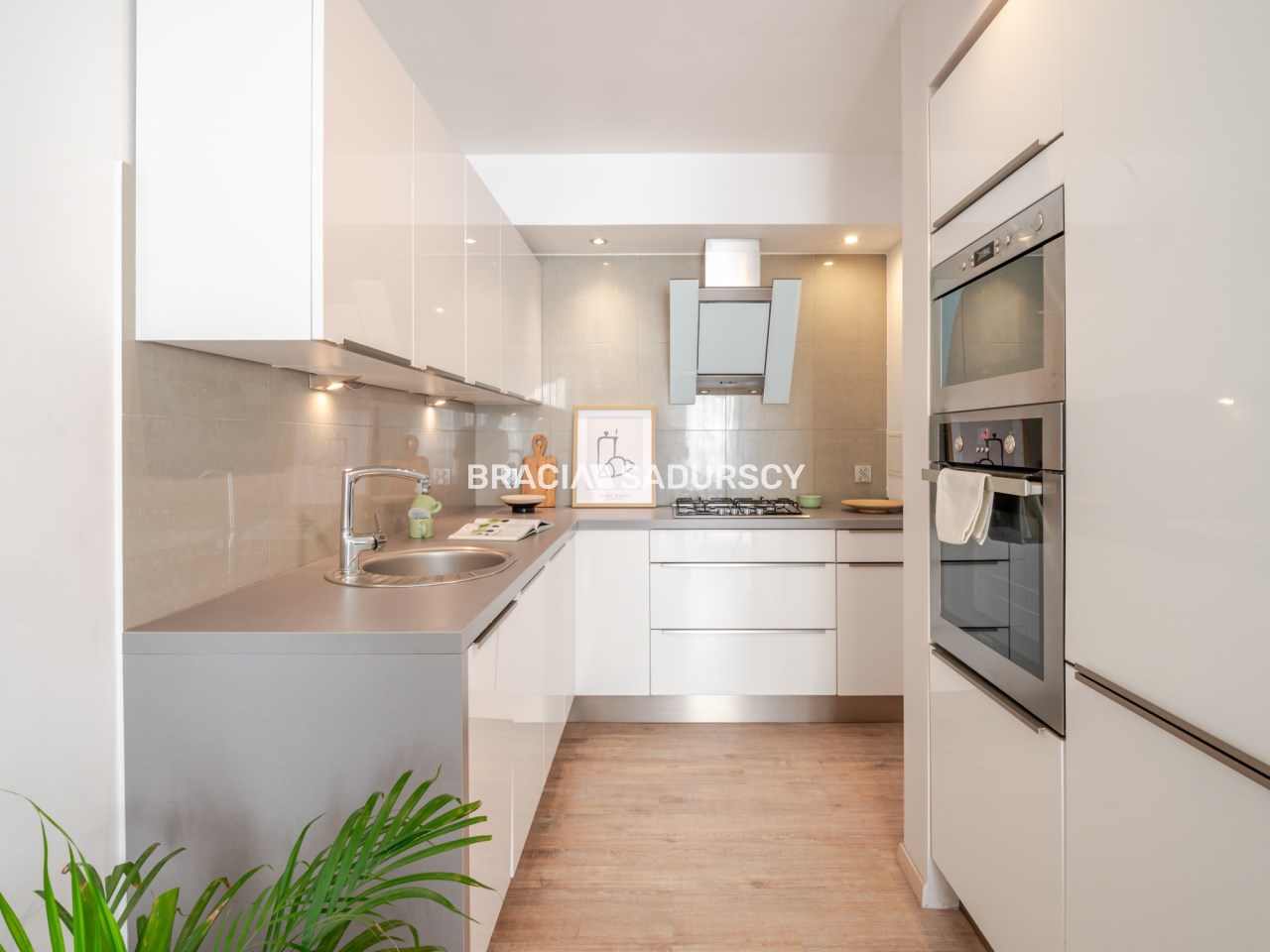 Оснащение кухни электрическая духовка, стоячие шкафы, холодильник, столовые приборы, раковина с батареей, посудомоечная машина, небольшое оборудование, микроволновая печь, кухонные шкафы, кухонные здания, кухонная мебель по размеру, газовая плита, вытяжка, висячие шкафы, vir_listalng_stala_zabudowa, vir_listalng_gniazdka_nablatowe