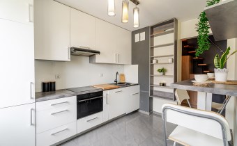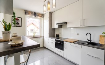 Оснащение кухни стоячие шкафы, холодильник, столовые приборы, стол, посудомоечная машина, посуда, небольшое оборудование, кухонные шкафы, кухонная мебель по размеру, индукционная плита, духовка, вытяжка, висячие шкафы, электрическая кухня, бытовая техника, vir_listalng_stala_zabudowa, vir_listalng_gniazdka_nablatowe