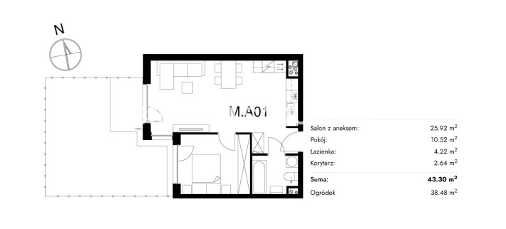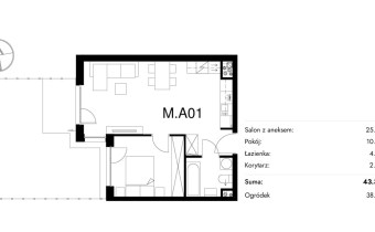 Жилая площадь [м2] 43,30 m²