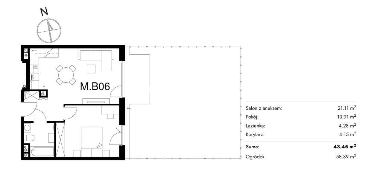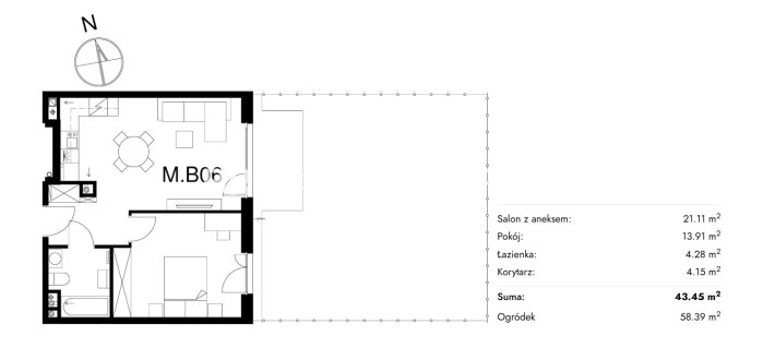 Жилая площадь [м2] 43,45 m²