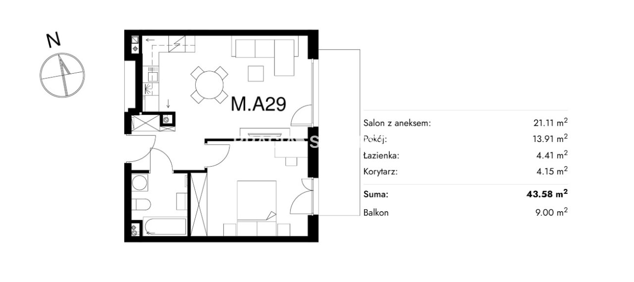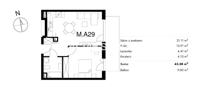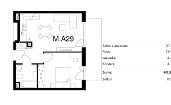 Жилая площадь [м2] 43,58 m²