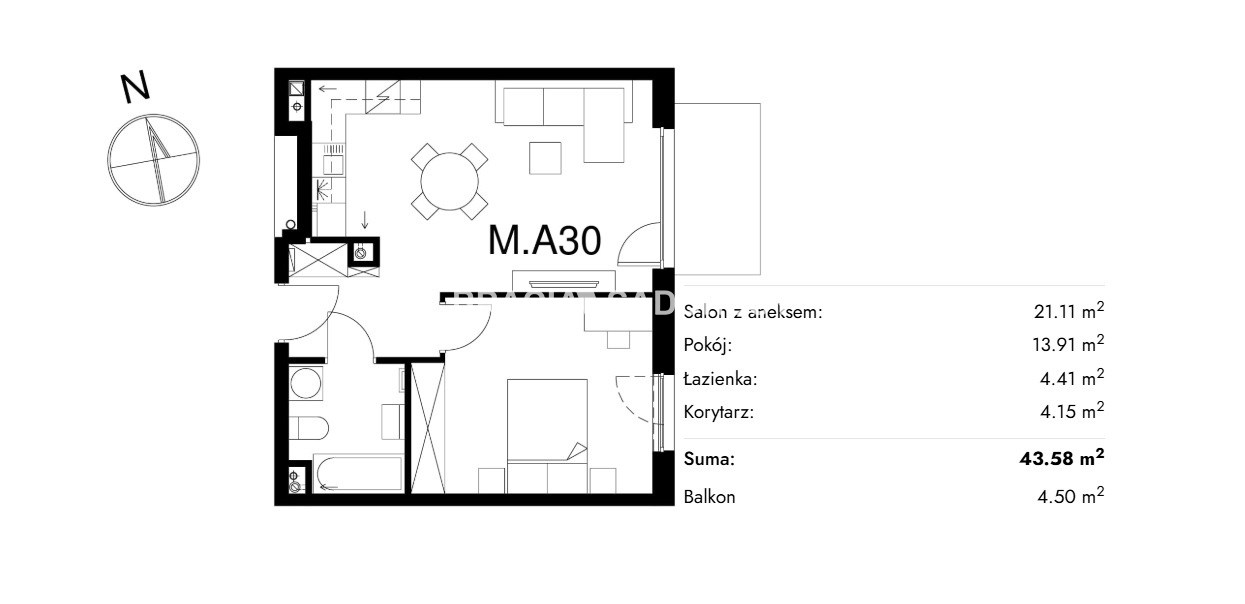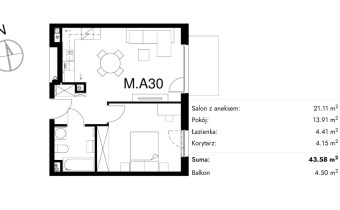Жилая площадь [м2] 43,58 m²