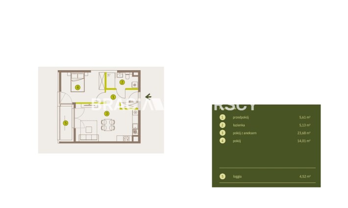 2 rooms 44,00 m2 20 886,36 zł/m2 5 709,00 USD/m2