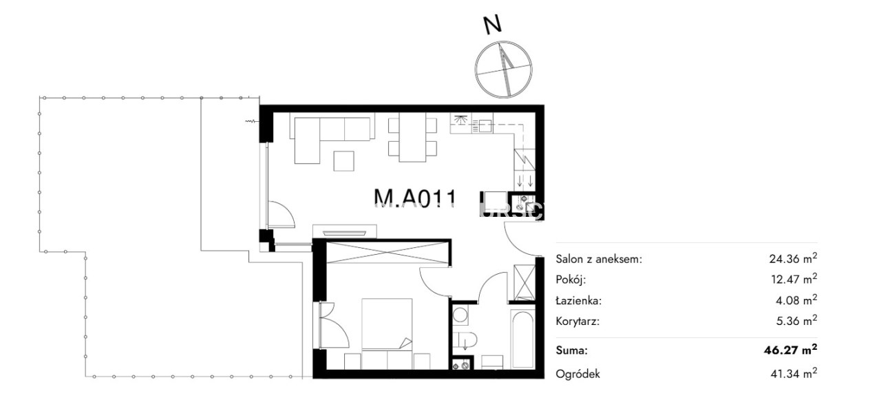 Жилая площадь [м2] 46,27 m²