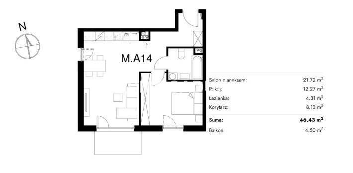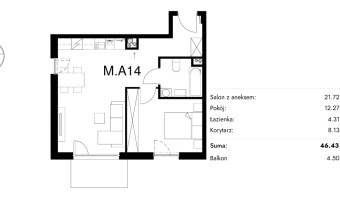 Жилая площадь [м2] 46,43 m²