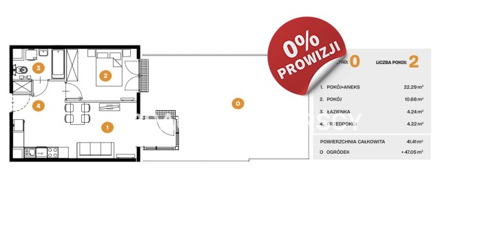 Площадь 41,41 m²