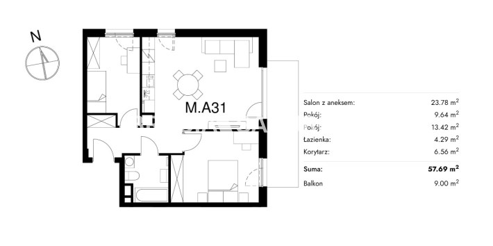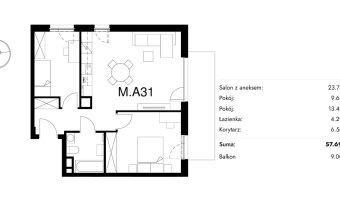 Жилая площадь [м2] 57,69 m²