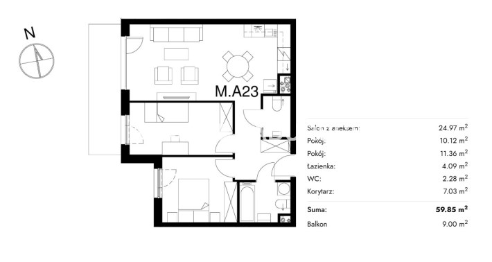 Жилая площадь [м2] 59,85 m²